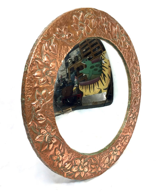 Antique Arts & Crafts Copper Metal Circular Wall Hanging Mirror c.1920