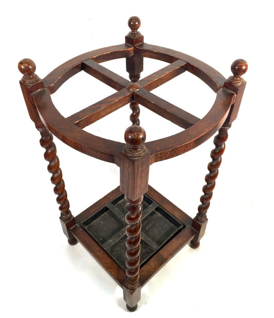 Antique Country House Bobbin Turned & Barley Twist Wooden Umbrella / Stick Stand