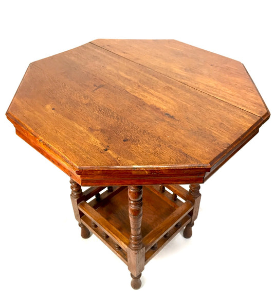 Antique Wooden Oak Two Tiered Octagonal Side Lamp Table / Occasional c.1930