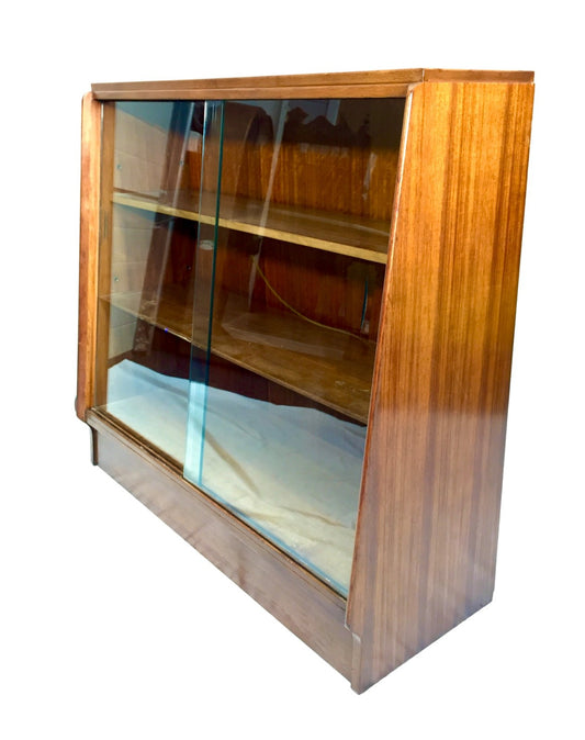 Antique Mid Century 1950s Wooden Display Bookcase Cabinet with Glazed Doors