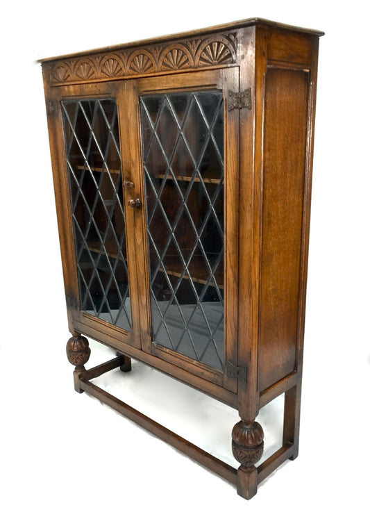 Vintage Oak Wooden Display Bookcase Cabinet & Glazed Doors Sideboard Old Charm
