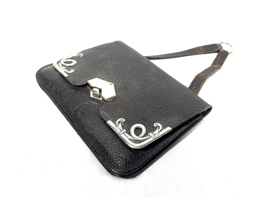 Antique Ladies Art Nouveau Silver Covered Ladies Leather Purse / Wallet / Clutch