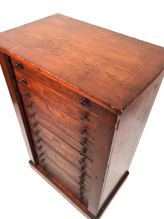 Antique 19th Century Wooden Wellington Collectors Specimen Chest Drawers Cabinet
