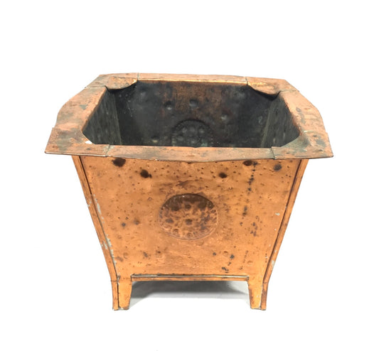 Antique Art Nouveau Copper Planter / Plant Pot / Arts & Crafts Log Basket Bucket