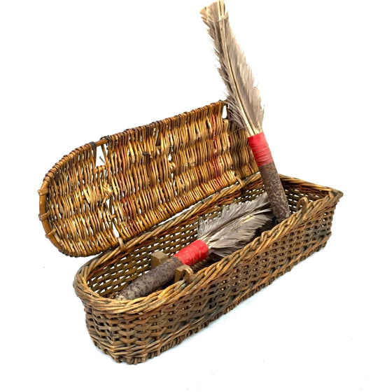 Antique Games & Toys Wicker Basket with Dart Game Inside / Early 20th Century