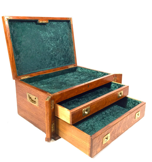 Antique Wooden Oak Canteen Box / Storage Chest / Jewellery Cabinet c.1920