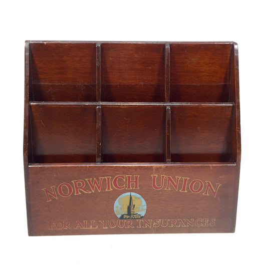 Antique Advertising Wooden Leaflet Holder For Norwich Union General Insurance