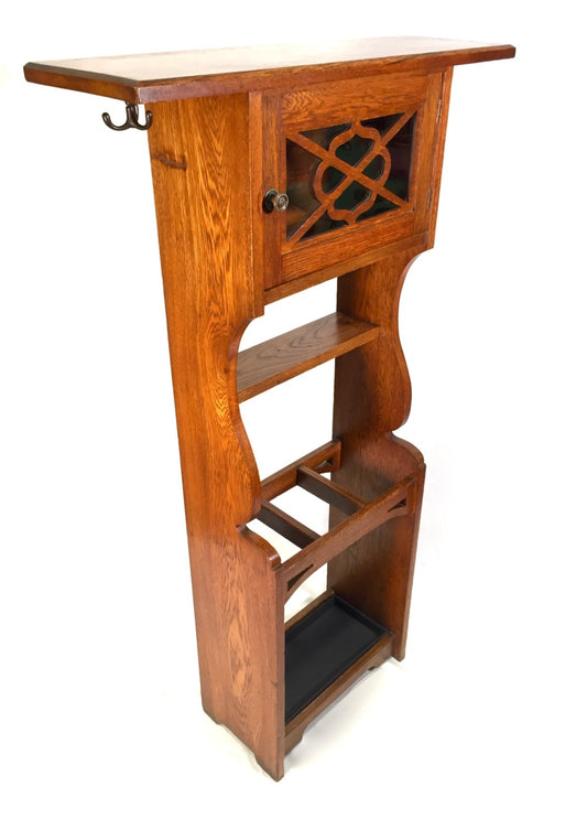 Antique Arts & Crafts Oak Wooden Entrance Hall Coat Stand / Umbrella Rack c.1900