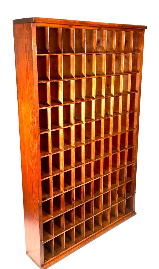 Antique Large Floor Standing Pine Wooden Pigeon Hole Unit Display Cabinet c.1930