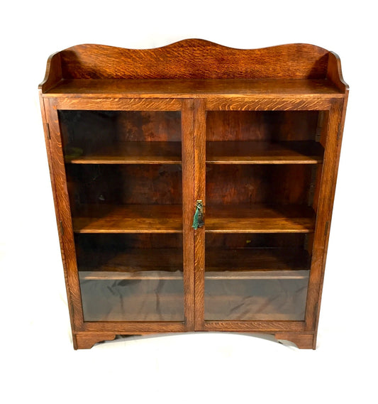 Antique 1930s Oak Wooden Display Bookcase Cabinet with Glazed Doors Sideboard