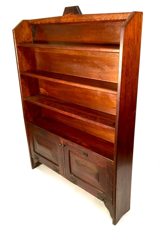 Antique Wooden Oak Bookcase Storage Cupboard Book Shelf / Display Cabinet c.1930
