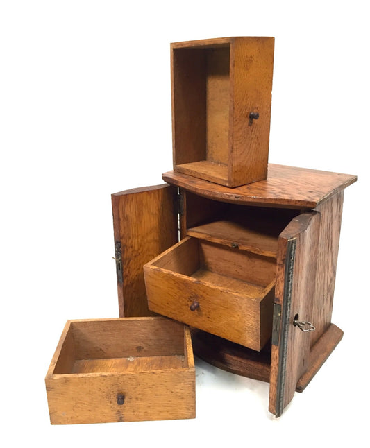 Antique Victorian Oak Wooden Chest of Drawers / Collectors Cabinet Box with Key