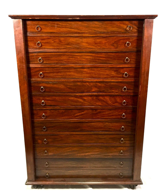 Antique Victorian Flamed Mahogany Specimen Collectors Filing Drawer Cabinet 1890