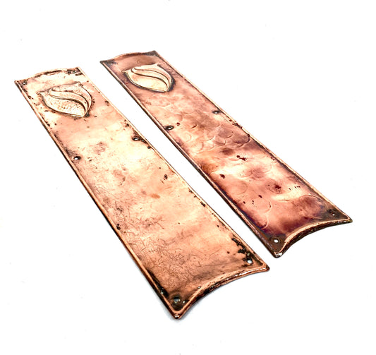 Antique Pair of Door Push Plates Copper Metal / Door Salvage Reclaimed c.1920