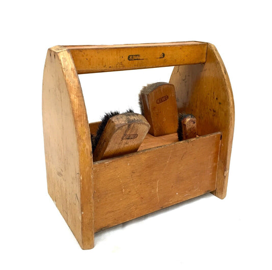 Antique Wooden Shoe Shine Box / Storage Rack / Unit by Kiwi & Brushes