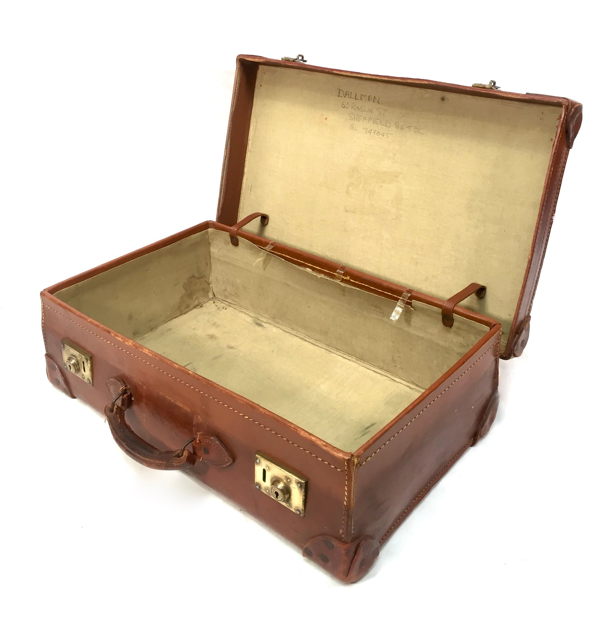 Vintage 20th Century Brown Leather Bound Suitcase / Travel Trunk Bag c.1950s